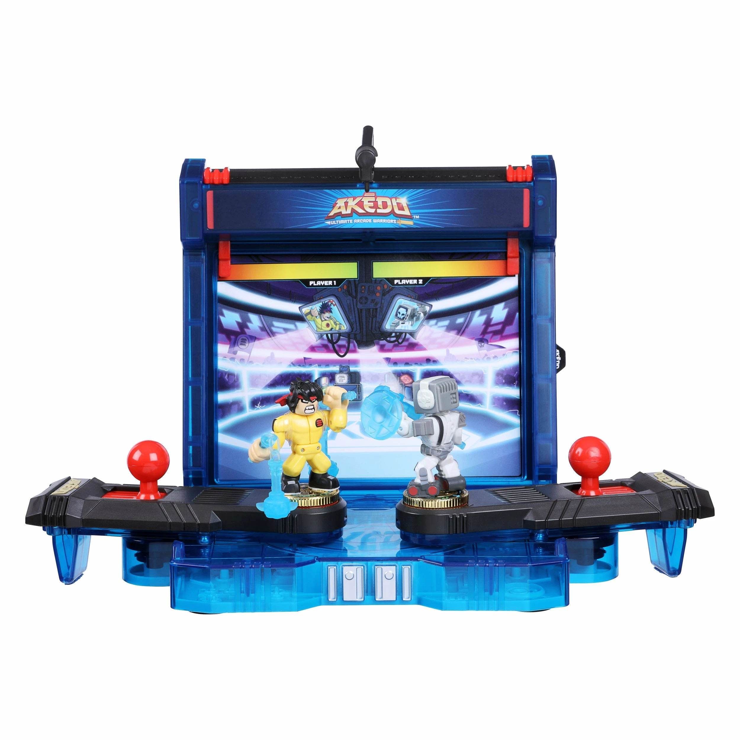 Enter the Ultimate Battle Arena to become the Ultimate Arcade Warrior! This is Next Level Battling Action. Choose your Warrior, battle with fury and finish them with a Split Strike! – GAME OVER! Take on and challenge your friends in this awesome Battle Arena. This “”Arcade Inspired”” fighting stage comes with 2 Exclusive Legendary Warriors: Turbo Chux Lee and Screenshot. Place them onto their Battle Controllers and let the battle begin! As you fight it out, hear over 35 real battle Sound Effects blast out of the Arena! Choose from 2 different Arena Backgrounds to fight in front of. Use the Scoreboard Sliders at the top of the Arena to keep score. The Ultimate Battle Arena works with all 38+ Akedo Mini Battling Figures so you can put on your very own Akedo tournament! Will your Warriors be on the winning team and become Legends of Akedo? But wait! This electronic toy Arena also turns into the Ultimate Akedo Dojo! Switch over to Training Mode and connect the Dojo Training Bag accessory so your Warriors can train and practice the perfect Split Strike.