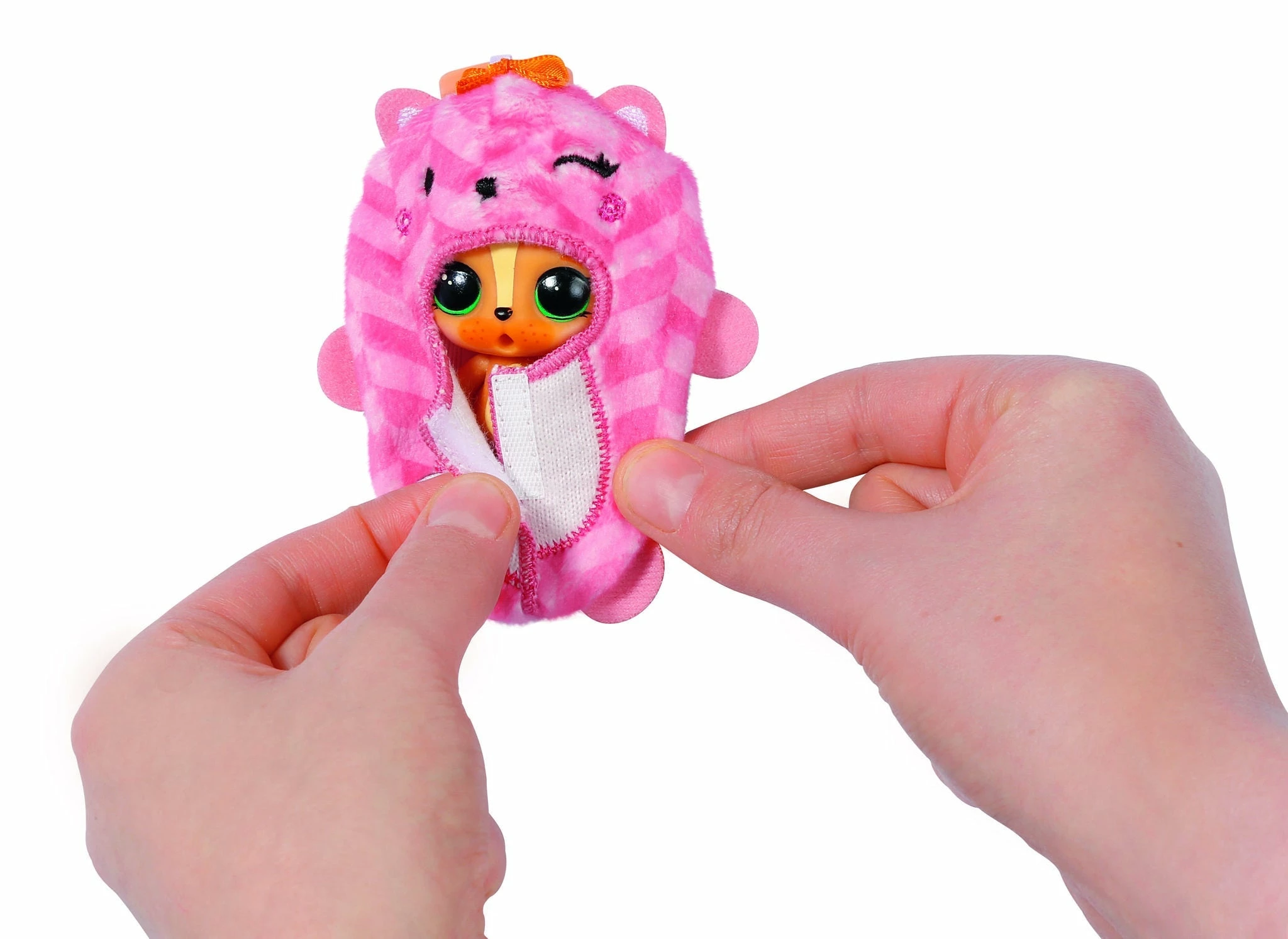 Which adorable animal will you get, unwrapping Baby Born Surprise pets? Fur, feathers, paws, or a tail? With a magic colour change reveal! A girl or boy in a swaddle to hug, find a pet for you to adopt and love! Unwrap 8+ surprises. Each pet comes wrapped in a soft towel package. Unwrap it to find a real bathtub and your adorable, sleepy-eyed pet in a sweet, soft swaddle. Wipe your pet’s sleepy eyes to reveal their eye color, and your pet’s pacifier colour tells you whether your pet is a boy or a girl. Will you find a puppy or a Kitty? Or maybe a monkey or a llama? Give your pet a bath in ice cold water for an incredible colour change surprise – the entire pet changes color to either a new color and outfit or even into a totally new pet. Use the included key chain clip to take your pet in its swaddle on-the-go! Collect all 18 unique combinations of soft swaddles and adorable pets.