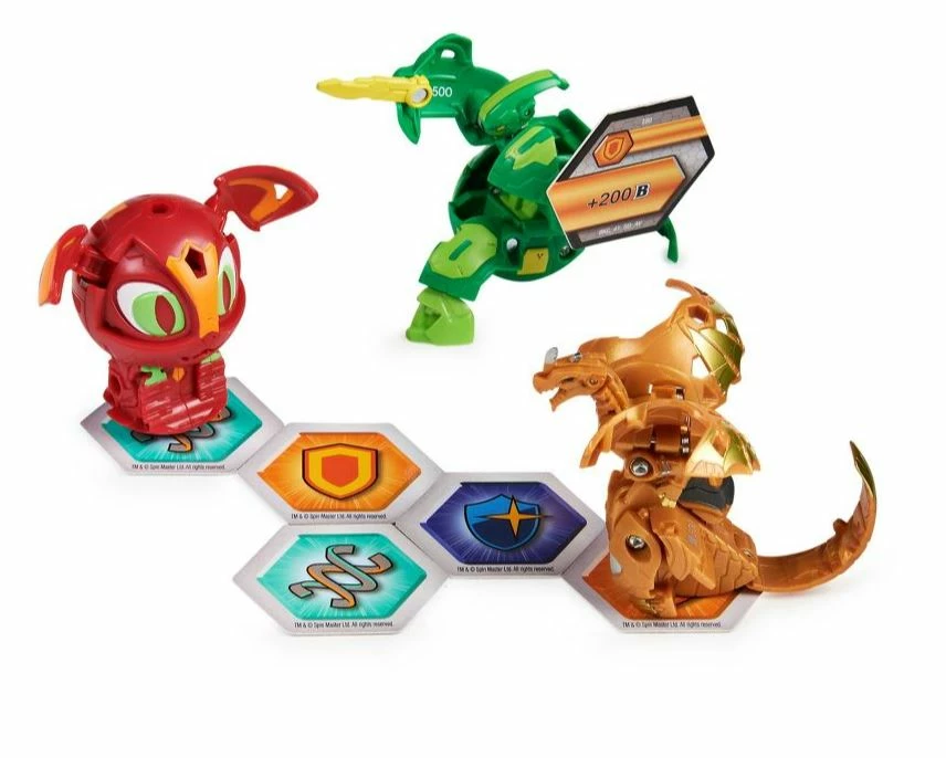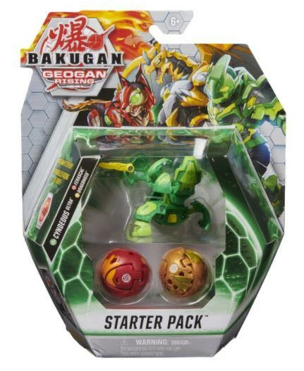 The Bakugan Starter Pack has everything you need to roll into action! Add two epic Geogan Rising Bakugan, one mighty Bakugan Ultra, six powerful BakuCores, collectible character cards and ability cards (all included) to your collection. Roll your Bakugan over the included BakuCores to pop open Baku-Action or choose your Bakugan Ultra to unleash an epic leap open transformation!