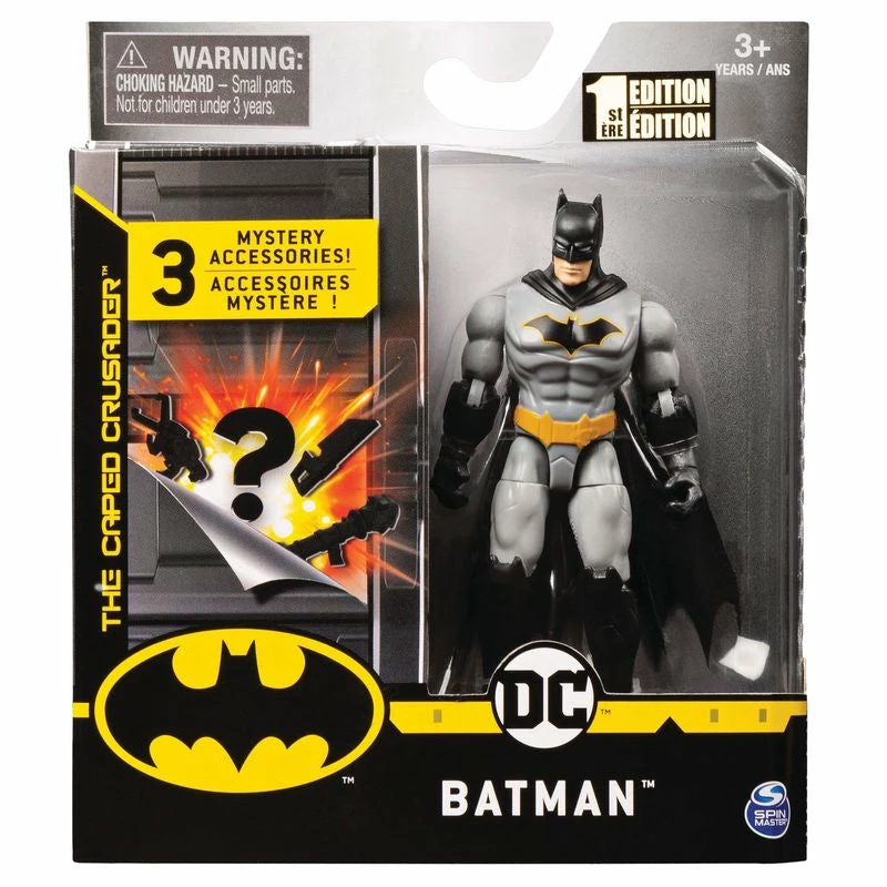 Epic Missions Begin With The batman 4-Inch Action Figures! Join Batman, The Caped Crusader On An Exciting Mission! Will You Find A Carnival Chaos, Harbor Defender, Sky Detective Or Arkham Asylum Escape Mission? Open The Box To Discover Your Mission On A Collector Card And Three Mystery Accessories Hidden In Compartments! Find Gauntlets, Shields, Blasters And More, Plus One Batgear Accessory In Every Pack To Help Build The Ultimate Armor Batman! Reveal Accessories (Including Rare And Super Rare) That Match Your MissionS Theme In Material Finishes Like Translucent, Neon, Shiny Titanium And Metallic. Armed With His Mission-Specific Accessories, Help Batman Defend Against The Villains Of Gotham City! With A Highly Detailed Sculpt And 11 Points Of Articulation, You Can Pose Your Figure Any Way You Want! Each 4-Inch Batman Articulated Action Figure Also Comes With A CollectorS Guide, So You Can Easily Keep Track Of Your Collection. Expand Your Action Figure Collection With Batman, The Joker, Robin And More (Each Sold Separately) And Use Your Imagination To Create Your Own Superhero And Villain Adventures! The Fate Of Gotham City Is In Your Hands. Bring The Excitement Of Batman To Life With The 4-Inch Action Figures!