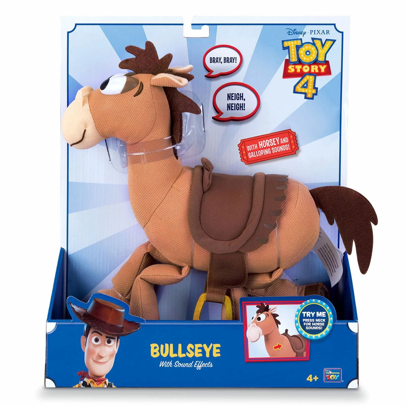 Press neck to activate horsey and galloping sound effects. Floppy legs just like in the Toy Story films.
