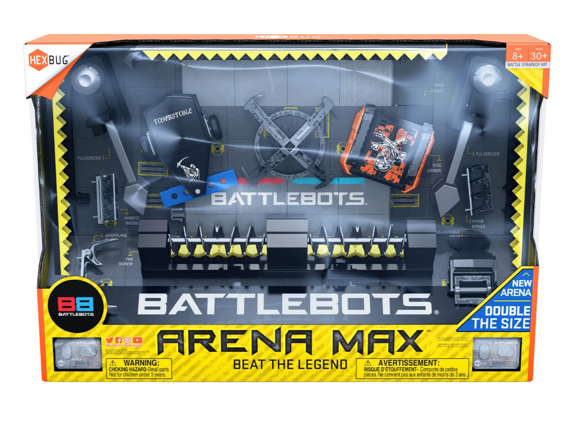 Suit up your BattleBots for an action-packed match inside the bigger, better, stronger Arena Max, with more fighting space and new interactive elements! The new arena design is 50% bigger than ever before and has an interlocking floor tile assembly!