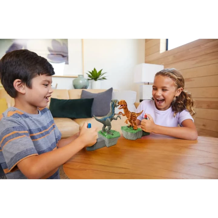 It’s raptor-on-raptor for the greatest dinosaur battle of all time! Instead of robots, this edition features Blue vs the Atrociraptor featured in Jurassic World Dominion, fighting head-to-head.
