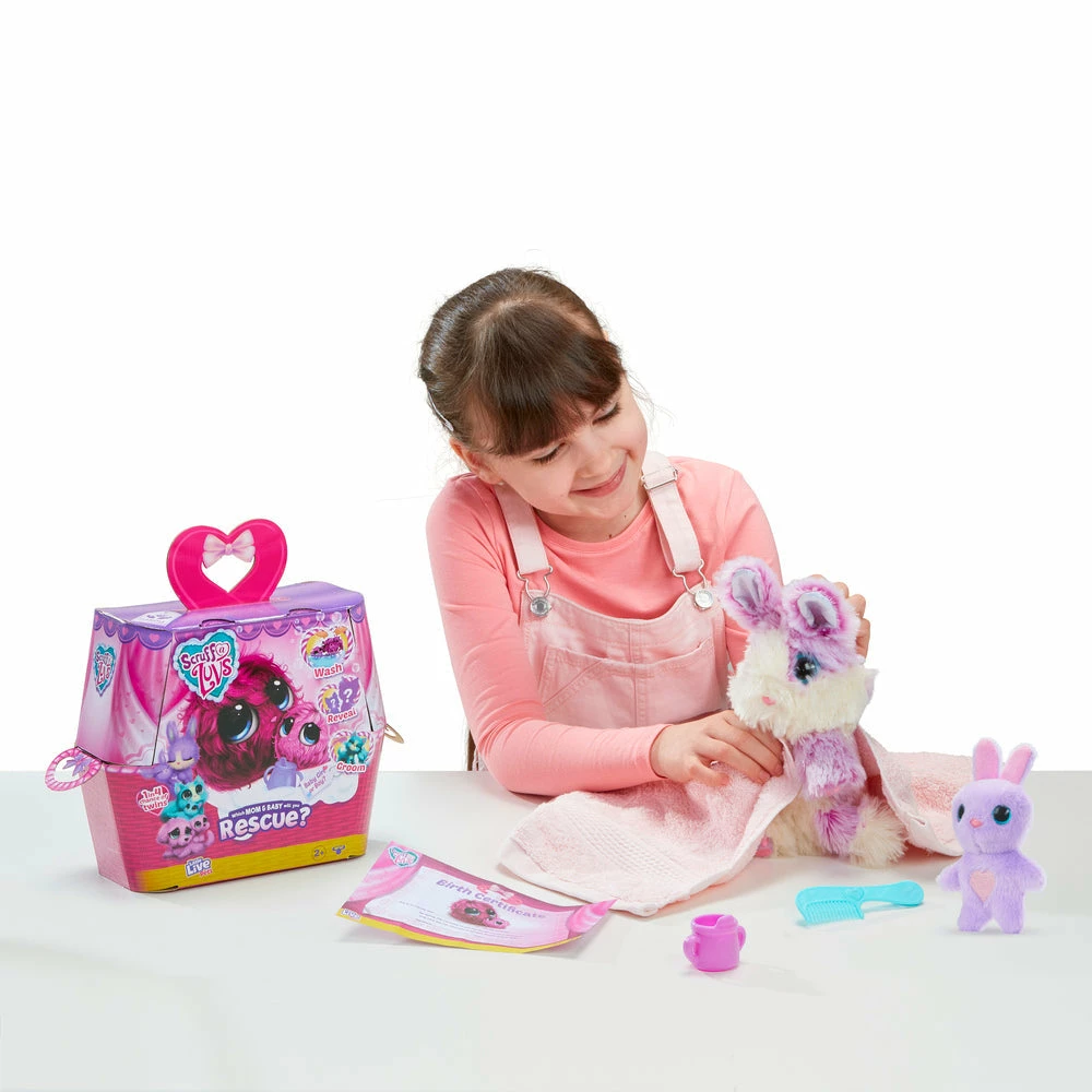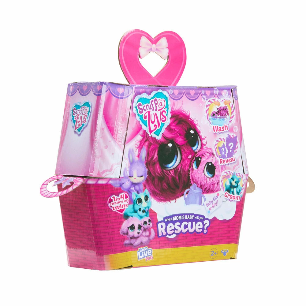 Inside the box is a mystery pet mom and baby waiting to be rescued! Which Scruff-a-Luvs Mom & Baby will you rescue? Will you find a Scruff-a-Luvs Dog, Cat or Bunny family?