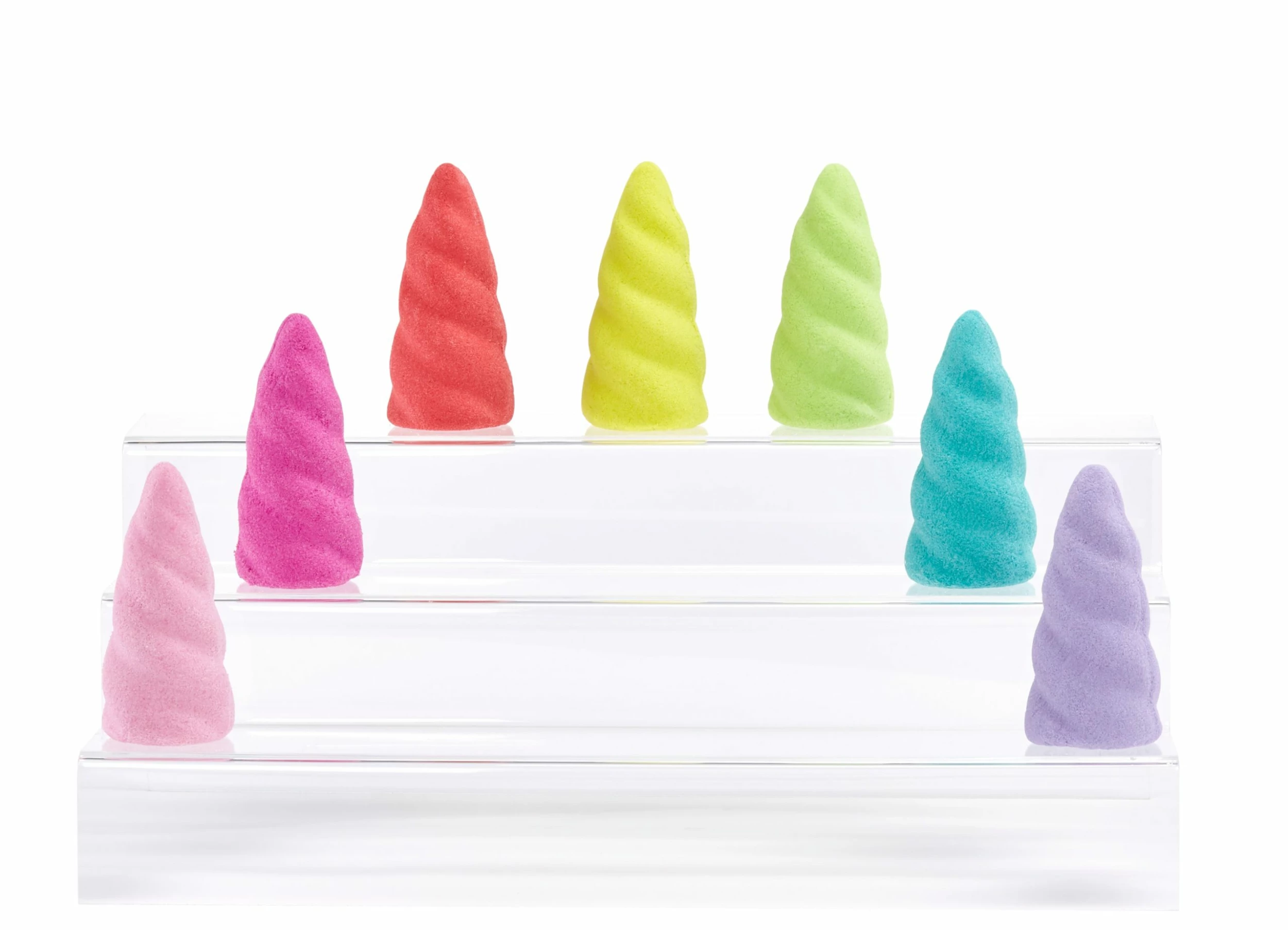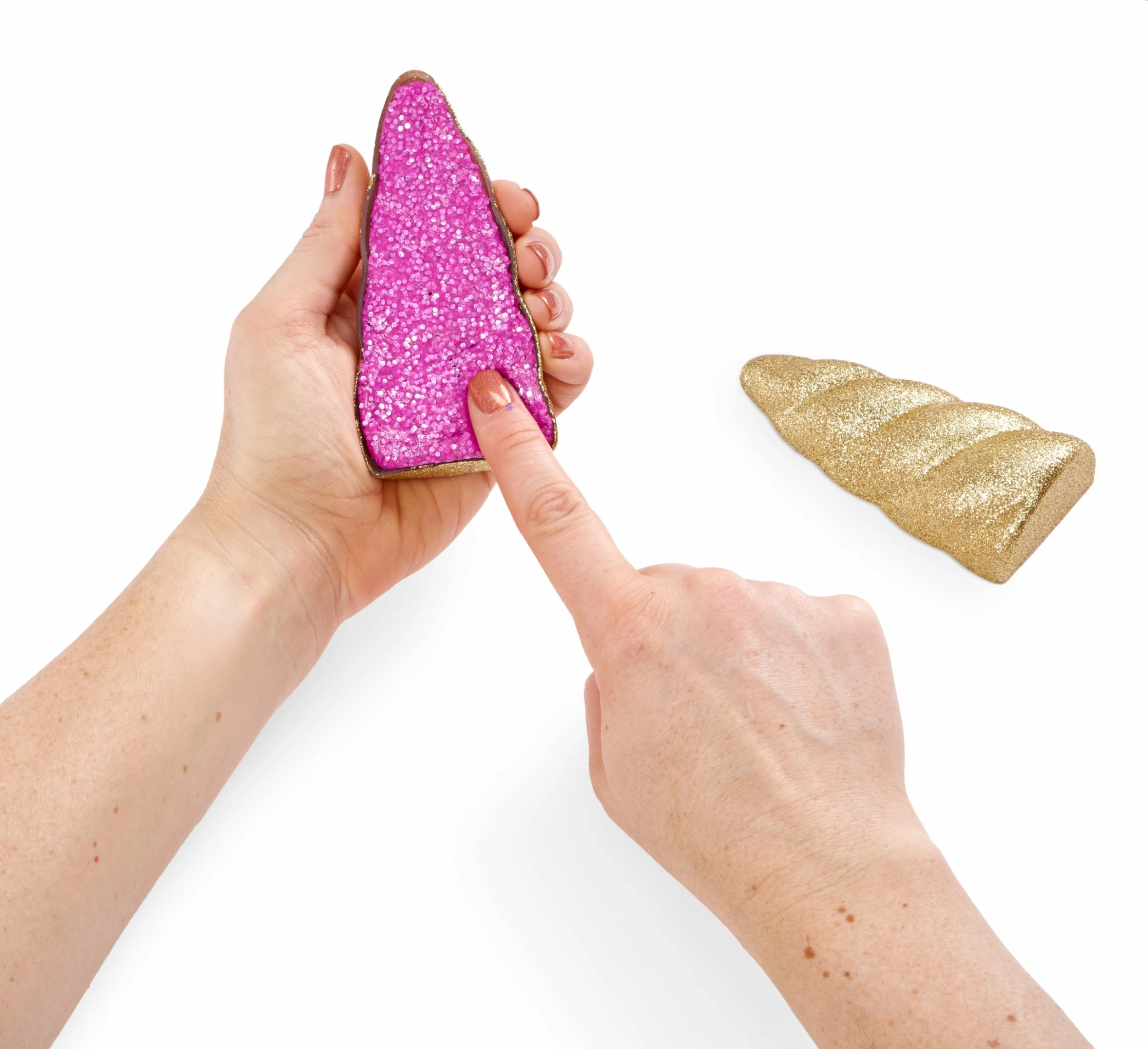 Make magical sparkly slime with Poopsie Unicorn Crush! Unwrap the golden unicorn horn to find a colorful crushable horn underneath. Dip the horn in water for 10 seconds, then crush for an amazing glitter explosion! Find the pre-made slime and mix in the glitter for incredible glittery slime! Store and display your sparkly slime in the golden unicorn horn. There are so many colors of glitter and slime, 35+ to collect! Collect the Rainbow!`