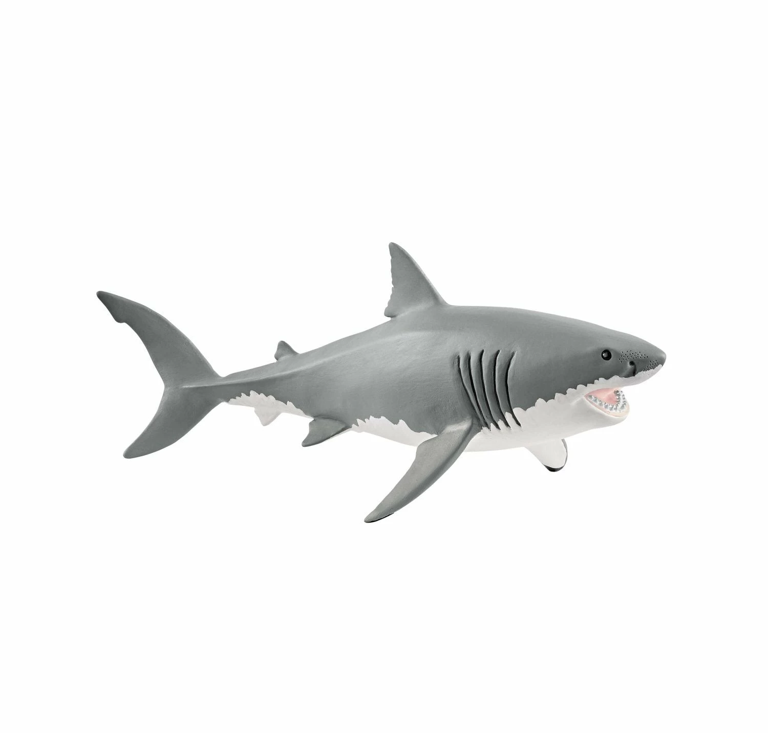 The Schleich figures are modelled with attention to detail, hand-painted with care, and provide educationally valuable playtime. The great white shark is the largest predatory fish on the planet. The way its teeth work is somewhat reminiscent of a revolver and they consist of several rows. When one of its sharp, triangular teeth breaks out of the front row, it is quickly replaced by another from the row behind it. New replacement teeth are constantly growing.