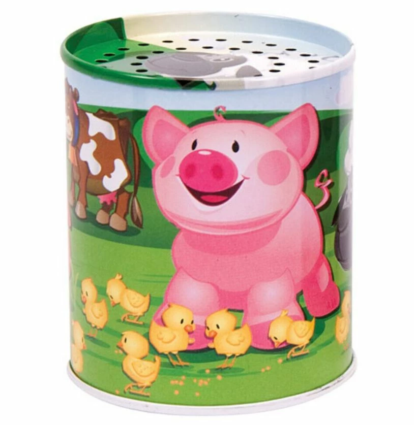 Our tin animal sound makers brings the farm to you! Graze in the fields and bask in the mud with your new farm friends! Just tip them over to hear their sound. Each sold separately. Ages over 18 months. Measures 5cm x 5cm x 6.3cm