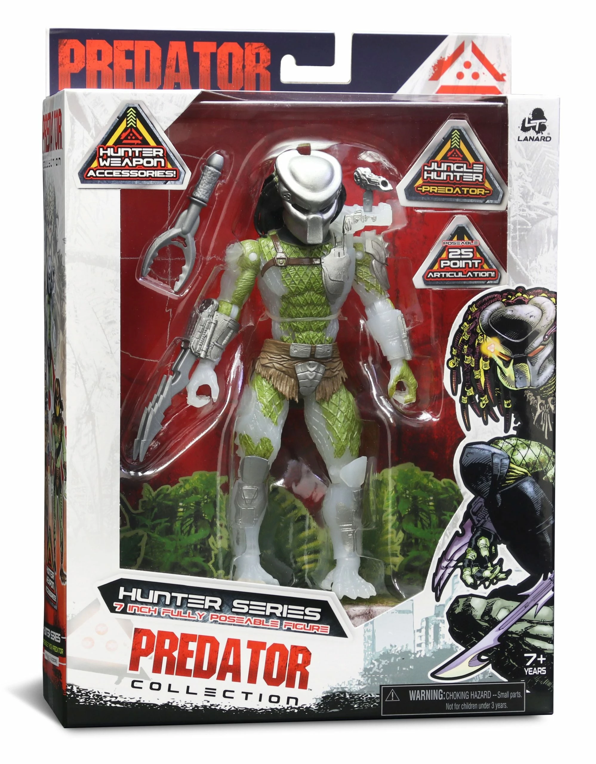 Action poseable Predator, each figure comes with his specialty hunter weapon. Predators, the most deadly and elusive hunters in the universe, have now chosen Earth as their otherworldly hunting ground. Special forces, police, and intelligence operatives now aware of these deadly creatures have united to track them down. But really, whos tracking whom! Utilizing advanced alien technology these deceptive extraterrestrials have an array of weapons for any situation or environment. From dense tropical jungles to concrete laden cities, the unseen Predators stalk their prey and will only leave with trophies in hand. Test your mettle and choose your Predator, grab them before they disappear.