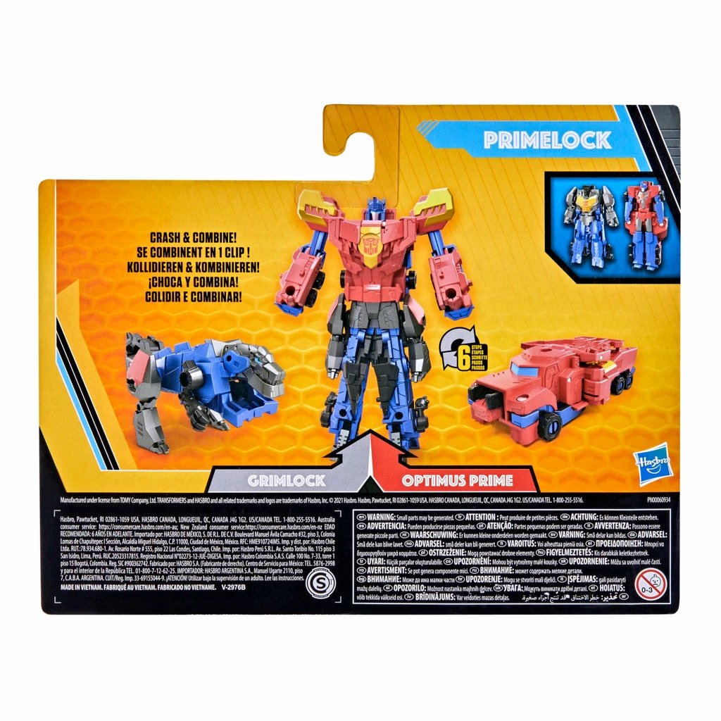 CRASH AND COMBINE: This pack comes with 2 figures that combine to form a bigger robot toy! Crash and combine the Optimus Prime and Grimlock figures in 6 steps to build a 5-inch Primelock figure