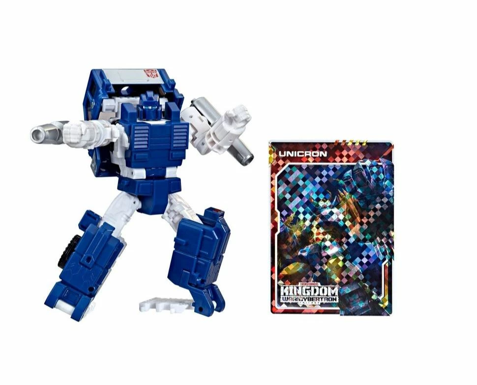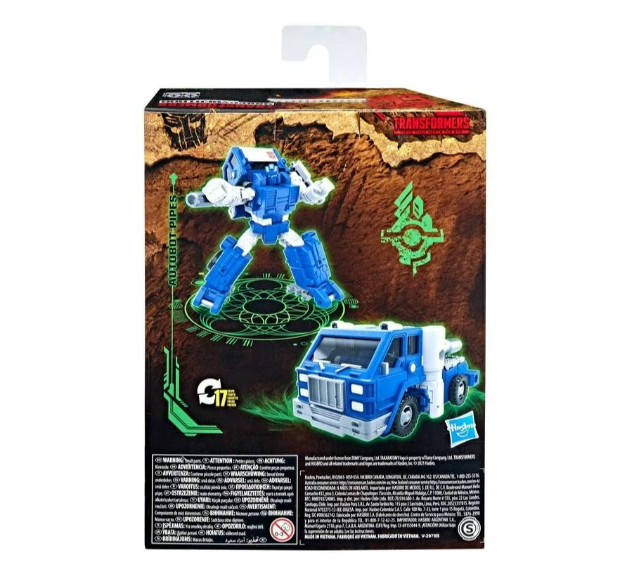 • Includes Transformers Generations War for Cybertron: Kingdom Deluxe Class Autobot Pipes figure, 2 accessories, Golden Disk card, and instructions.