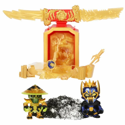 Two Treasure Hunters are trapped inside magic foam, and once they’re sprung free they’re ready to fight! The Treasure X Ninja Gold Shadow vs Light Battle Pack includes a double-bladed Power Sword they can use to slice their way through glow-in-the-dark sand, shadow sand and the golden wax.