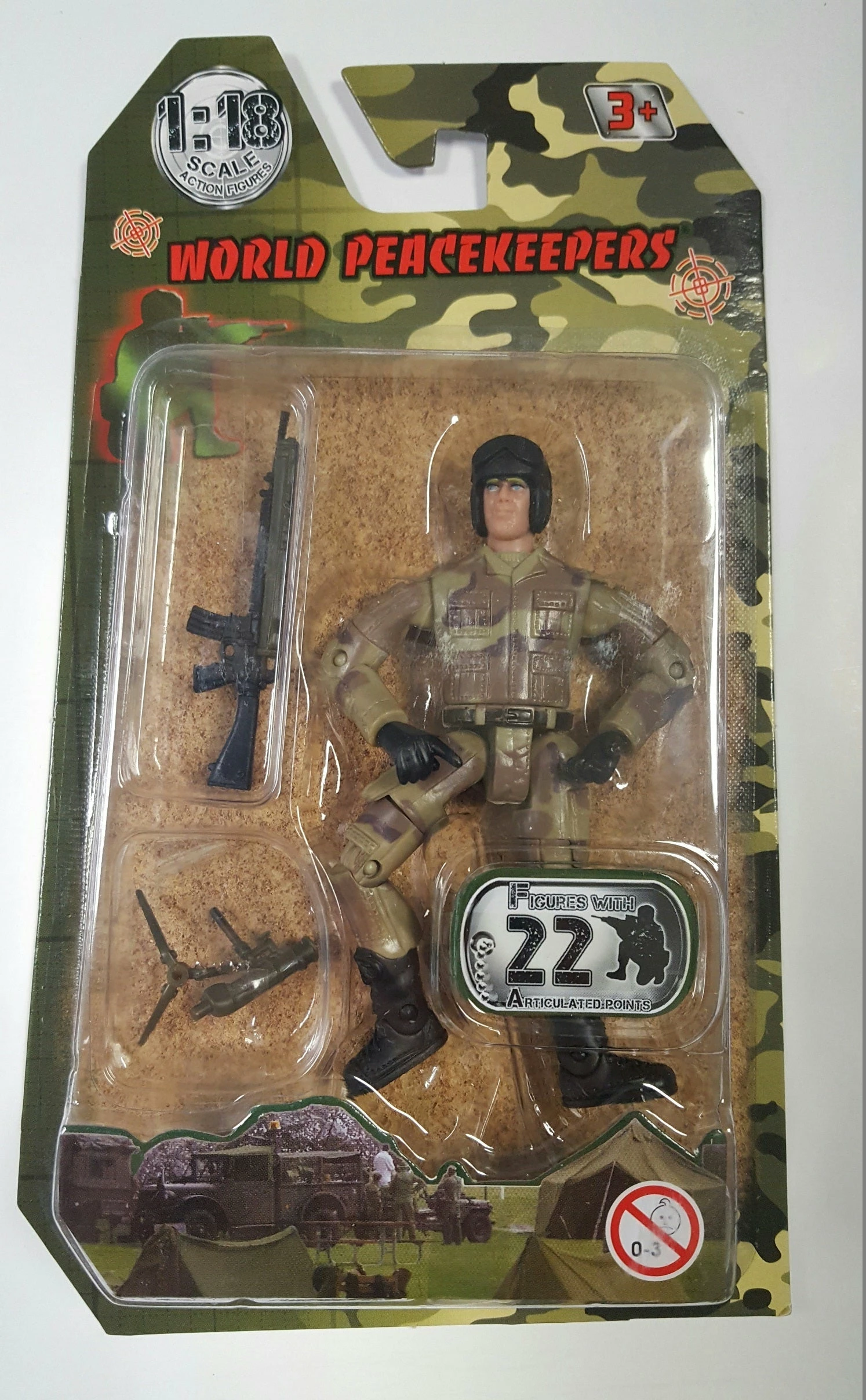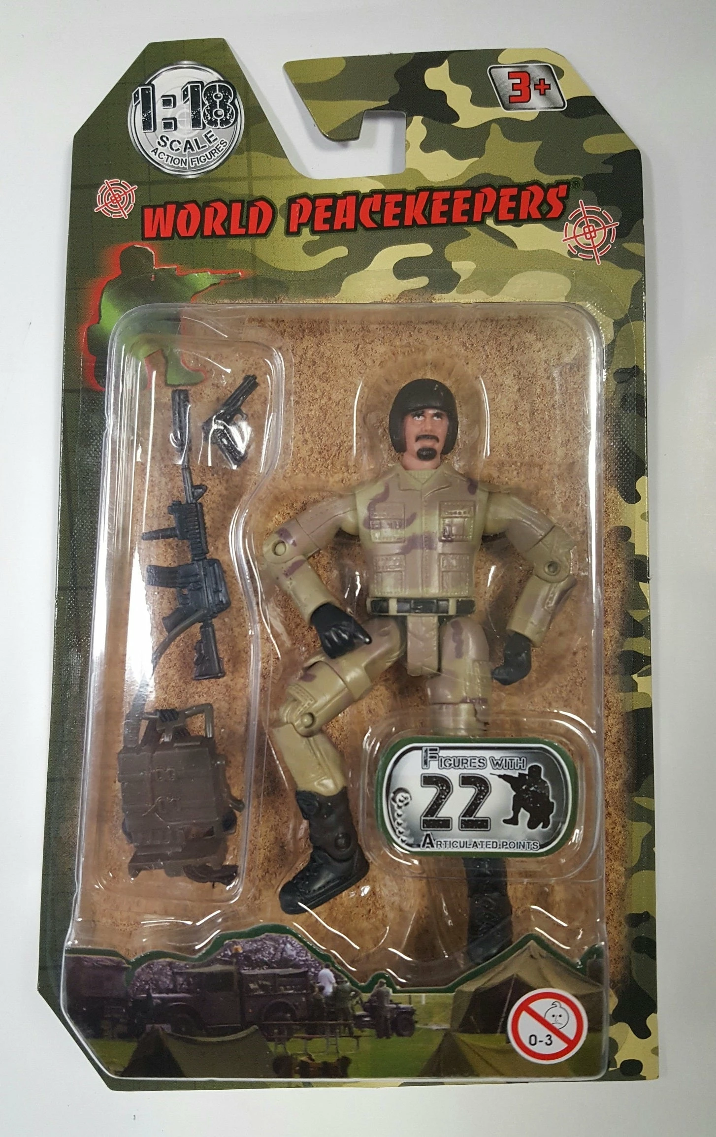 1:18 Scale military figure and accessories. Fully poseable action figure, body with over 21 articulated points, authentic, highly detailed equipment & accessories.