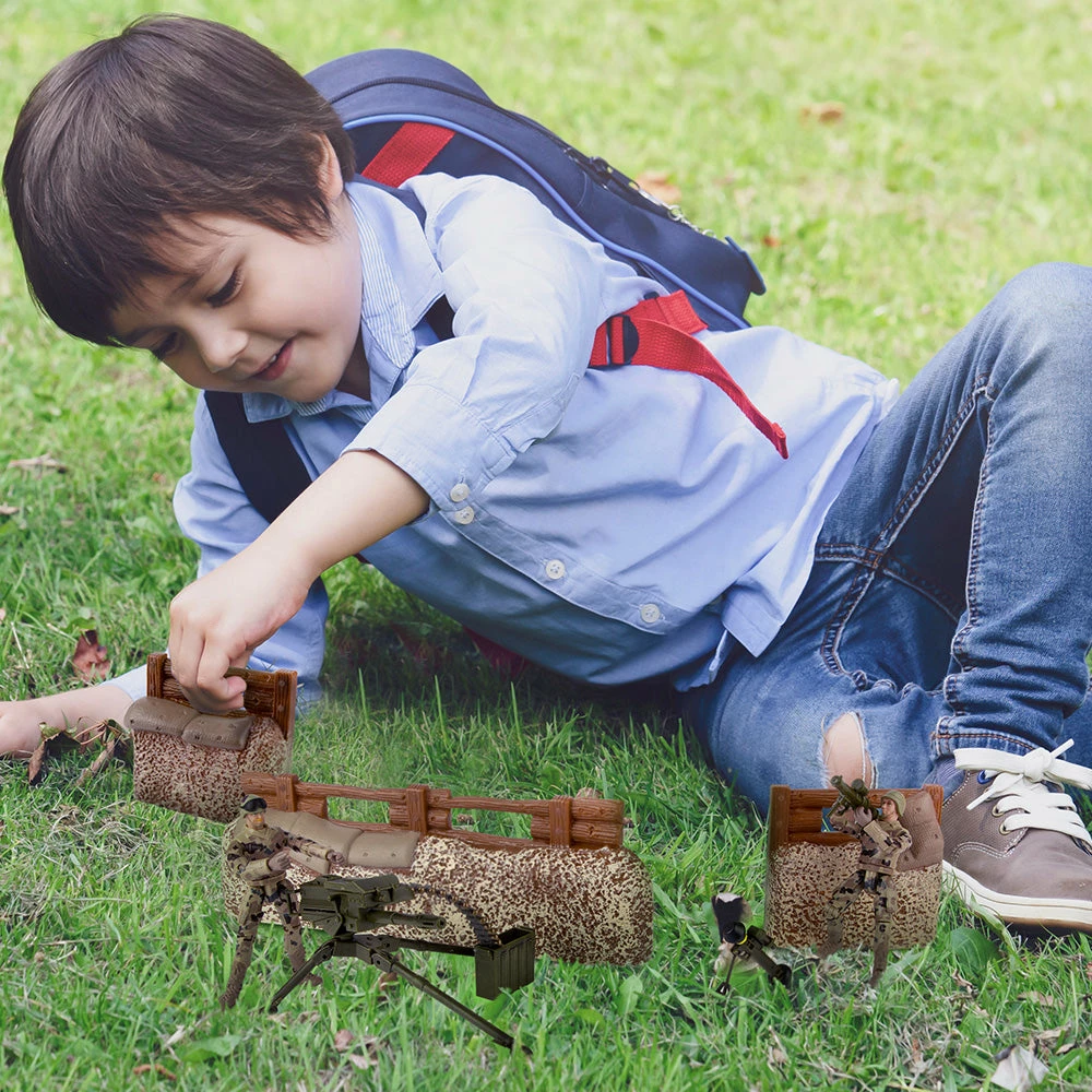 This set includes defence barriers, 2 figures and multiple accessories.