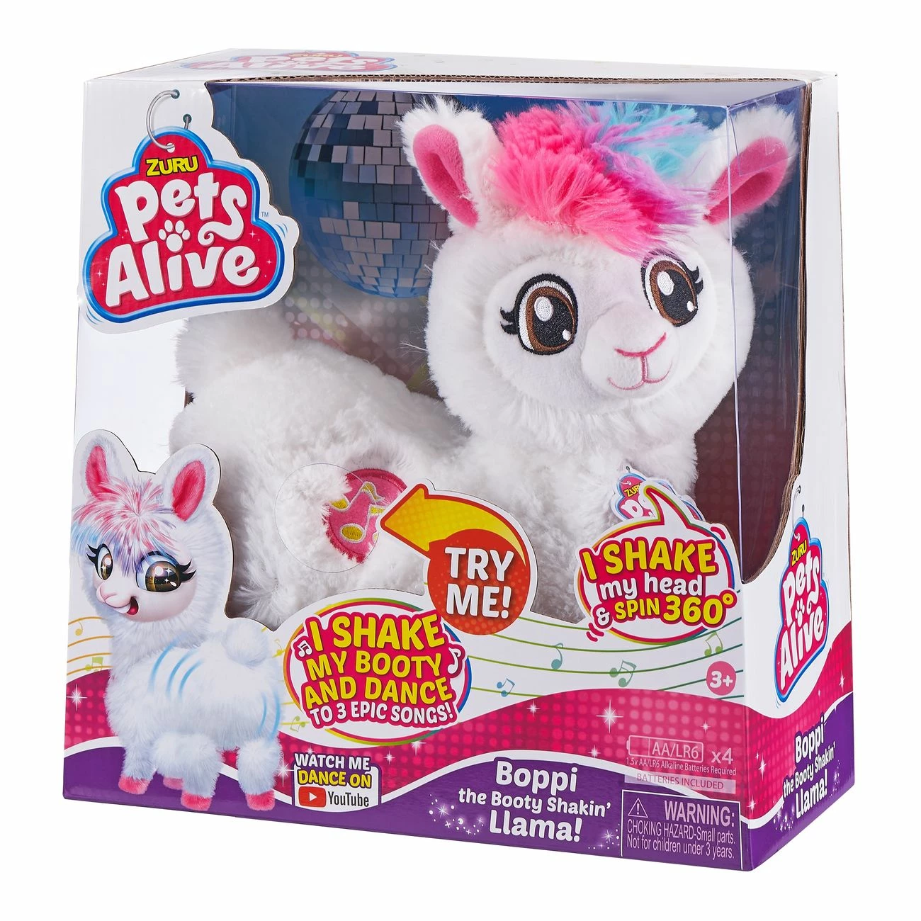 Shake it like nobody is watching with Pets Alive Boppi the Bootie Shackin’ Llama. Shakes it’s booty and spins its head to 3 original songs. Batteries Included. AGE 3+